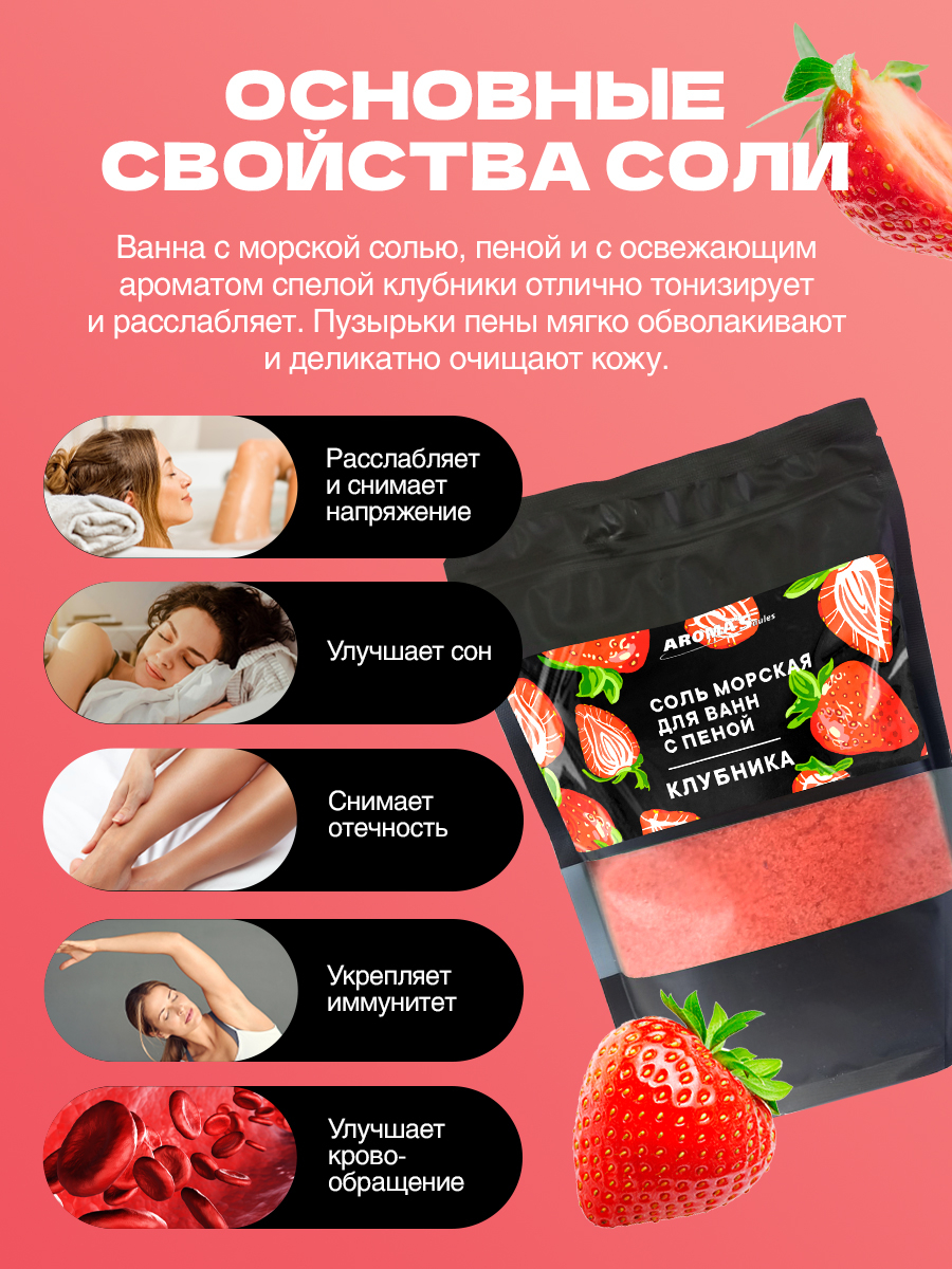 Соль для ванн с пеной "Морская. Клубника" (1200 г)
