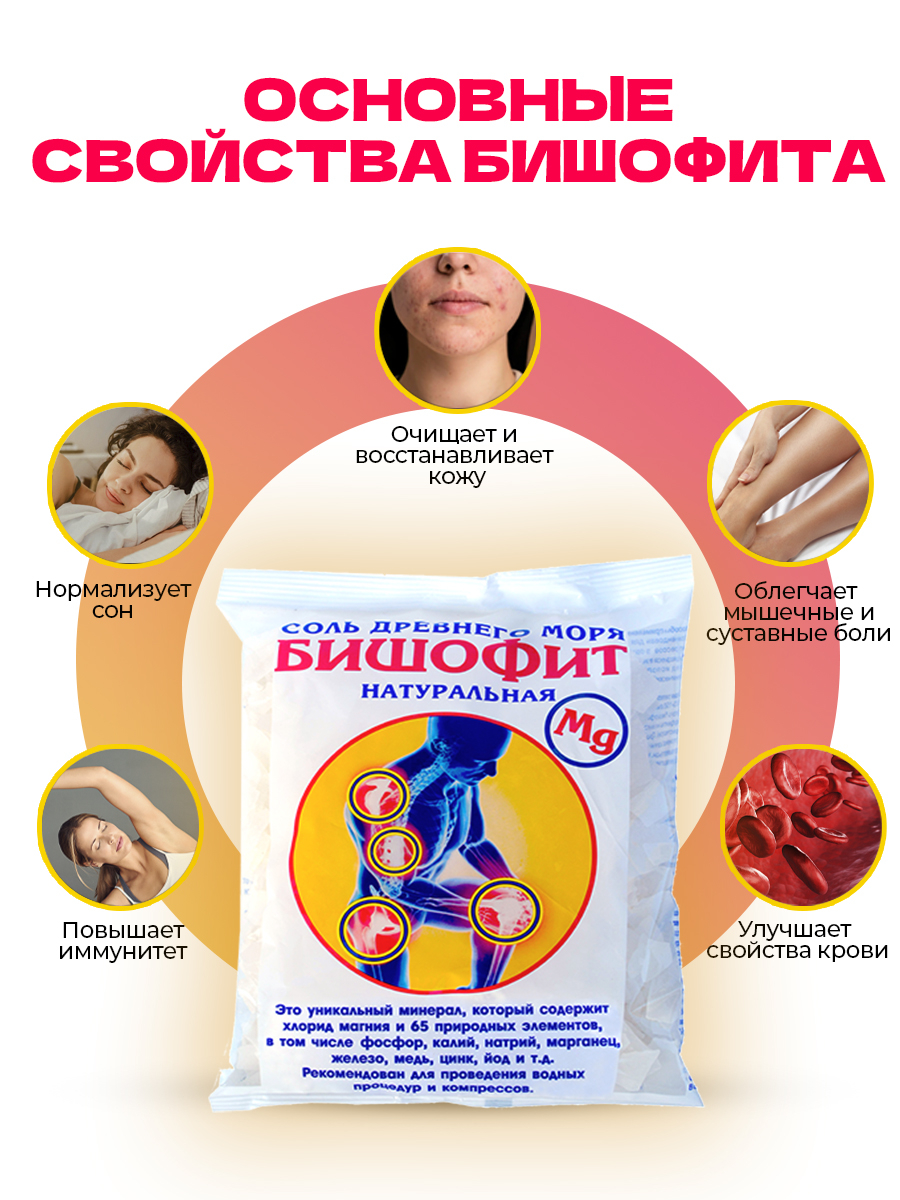 Бишофит является природным минералом, включающим хлоридно-магниевонатриевый комплекс, йод, бром, железо и другие минералы.