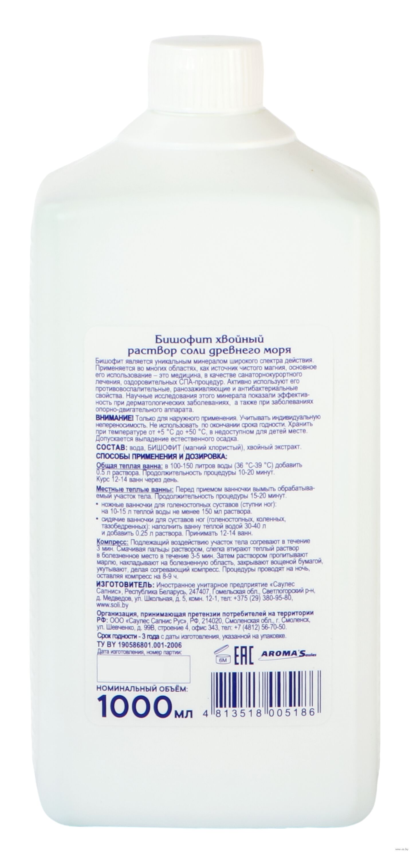 Ручная ванночка для кистей рук: на 1-2 литра теплой воды не менее 1 ч.л. (5 г) сухого или не менее 15 мл раствора. Ручная ванночка для кистей и локтевых суставов (одновременно): на 4-5 л теплой воды не менее 1-2 ст. л. (10-20 г) сухого бишофита или не менее 50 мл раствора бишофита.