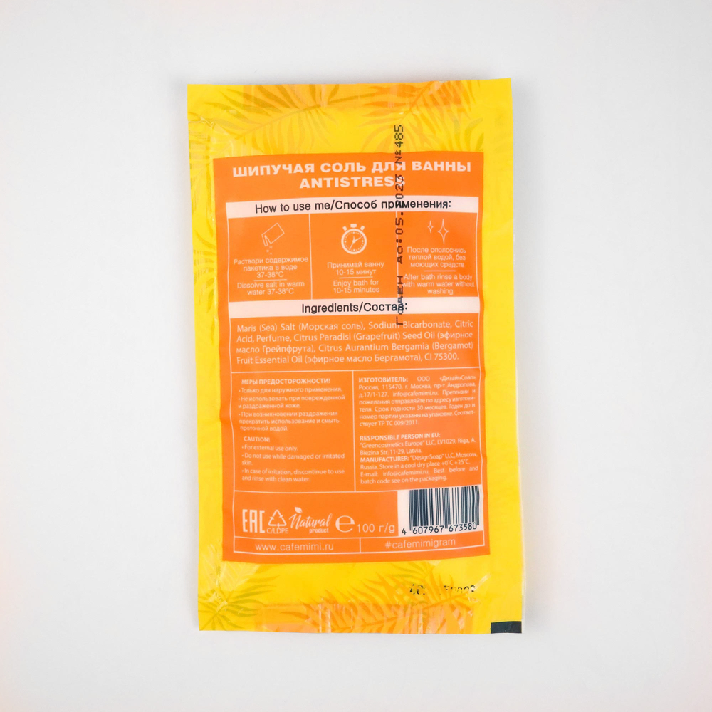 Maris (Sea) Salt (Морская соль), Sodium Bicarbonate, Citric Acid, Perfume, Citrus Paradisi (Grapefruit) Seed Oil (эфирное масло Грейпфрута), Citrus Aurantium Bergamia (Bergamot) Fruit Essential Oil (эфирное масло Бергамота), CI 75300.Мы используем файлы cookie для обеспечения удобства работы с сайтом и его контакта с пользователем.