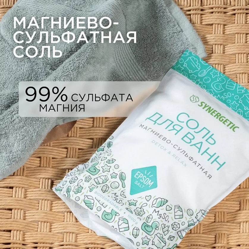 Натуральная магниево-сульфатная соль для ванн способствует выведению токсинов, эффективно очищает и смягчает кожу, делая ее гладкой и шелковистой. Солевые ванны обладают антицеллюлитным действием и улучшают внешний вид кожи, восстанавливая ее тонус и упругость.