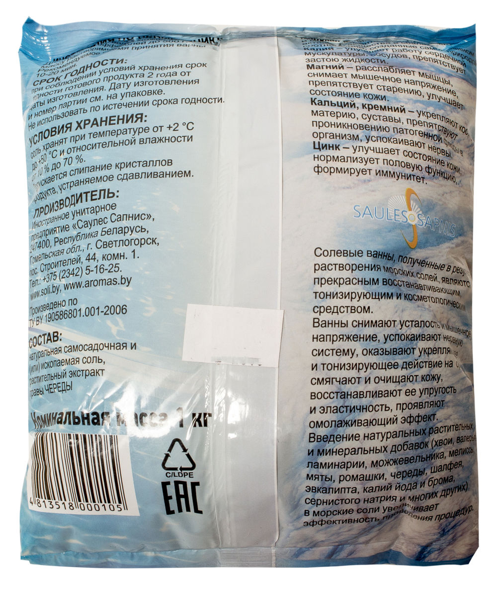 Соль для ванн "Морская. Натуральная" (1 кг)