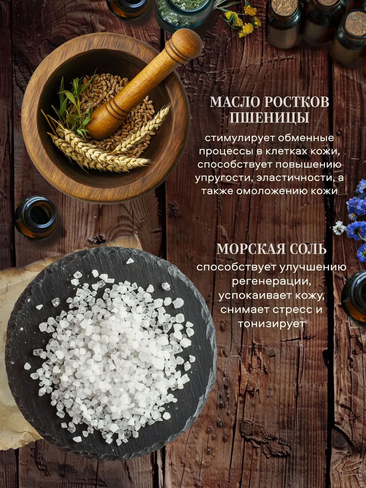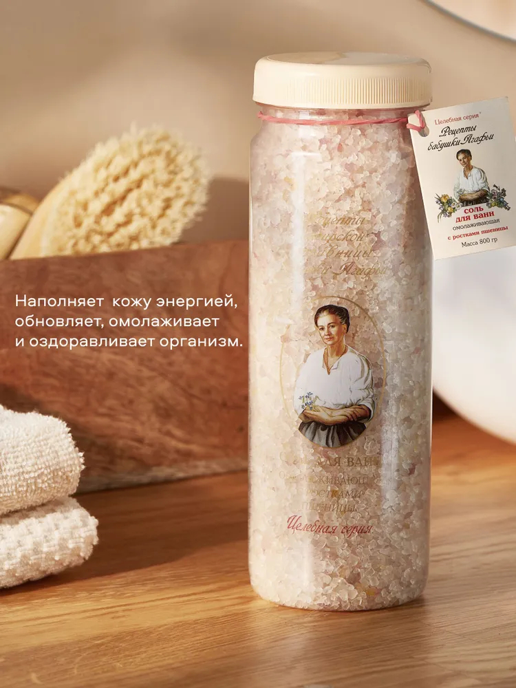 Теплая солевая ванна позволяет усилить омолаживающий эффект масла ростков пшеницы за счет более глубокого проникновения целебных веществ в раскрывшиеся и очищенные солью поры кожи.