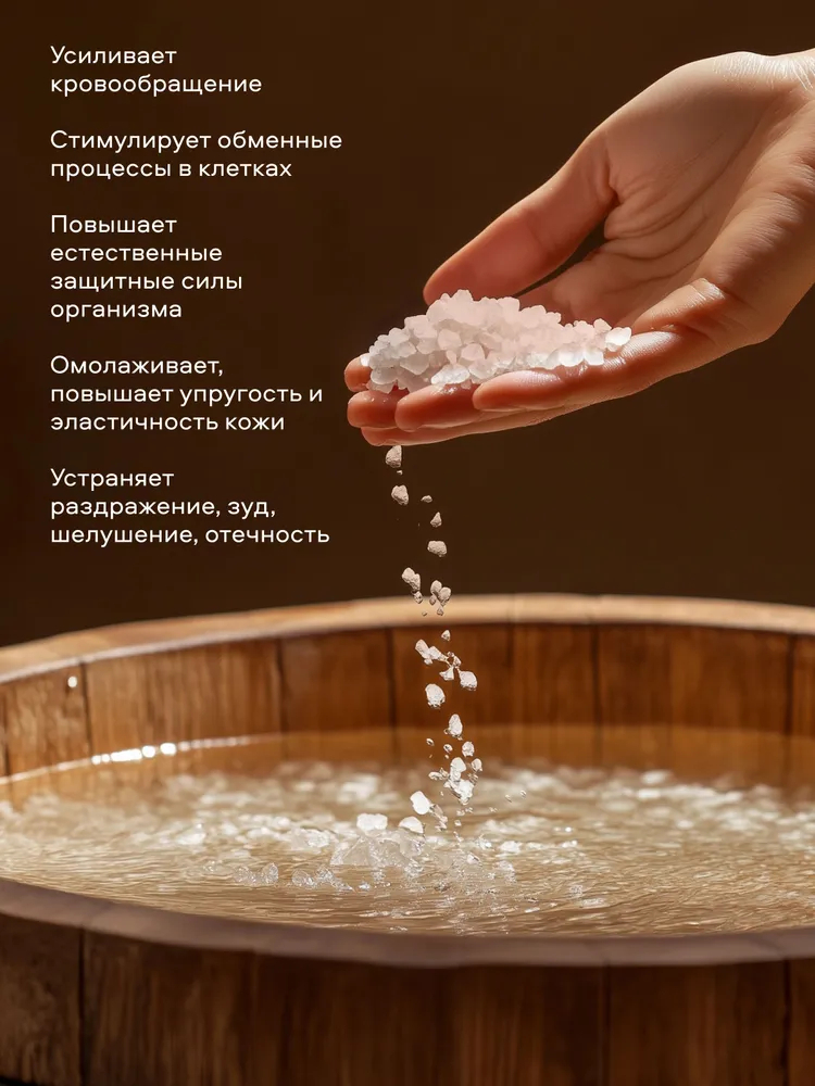 Растворите 4 столовых ложки во всем объеме ванны при температуре 36-38°С. Продолжительность приема процедуры 10-15 минут.Состав