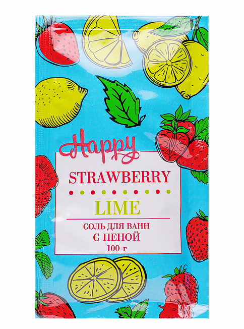 Клубника и лайм: какой дерзкий дуэт! Новая соль из серии "Happy" с пеной для расслабления и купания. Прими ванну и ощути на себе нежнейшие пузырьки пены и притягательный, "вкусный" аромат.