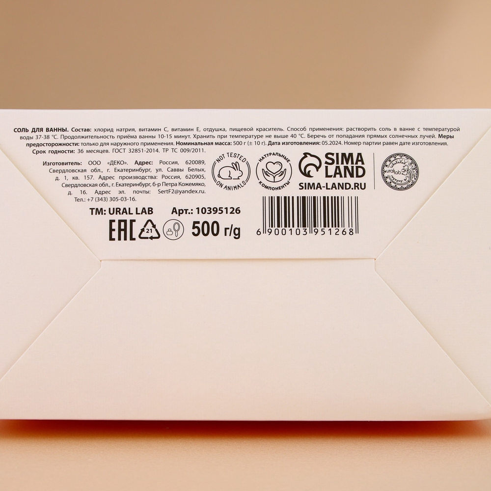 Растворить соль в ванне с температурой воды 37-38 °С. Продолжительность приёма ванны 10-15 минут.Состав