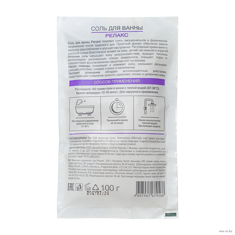 Растворите 100 грамм соли в ванне с теплой водой (37-38 градусов). Время процедуры 10-15 минут. Для наружного применения.Состав