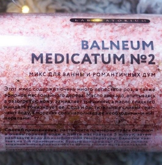 Этот микс содержит очень много лепестков роз, а также эфирное масло чайного дерева. Масло авокадо, впитываясь в разогретую кожу, заживляет трещинки, а масло сладкого миндаля тонизирует ее. Сода и растительные сливки смягчают воду, а морская соль наполняет ее необходимыми минералами.