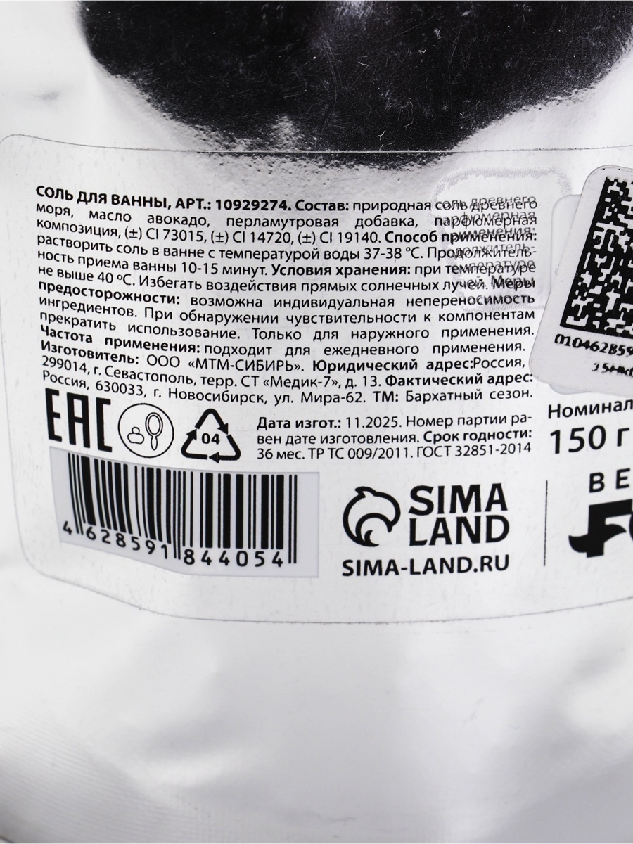 Растворить соль в ванне с температурой воды 37-38 градусов. Продолжительность приёма ванны 10-15 минут.Состав