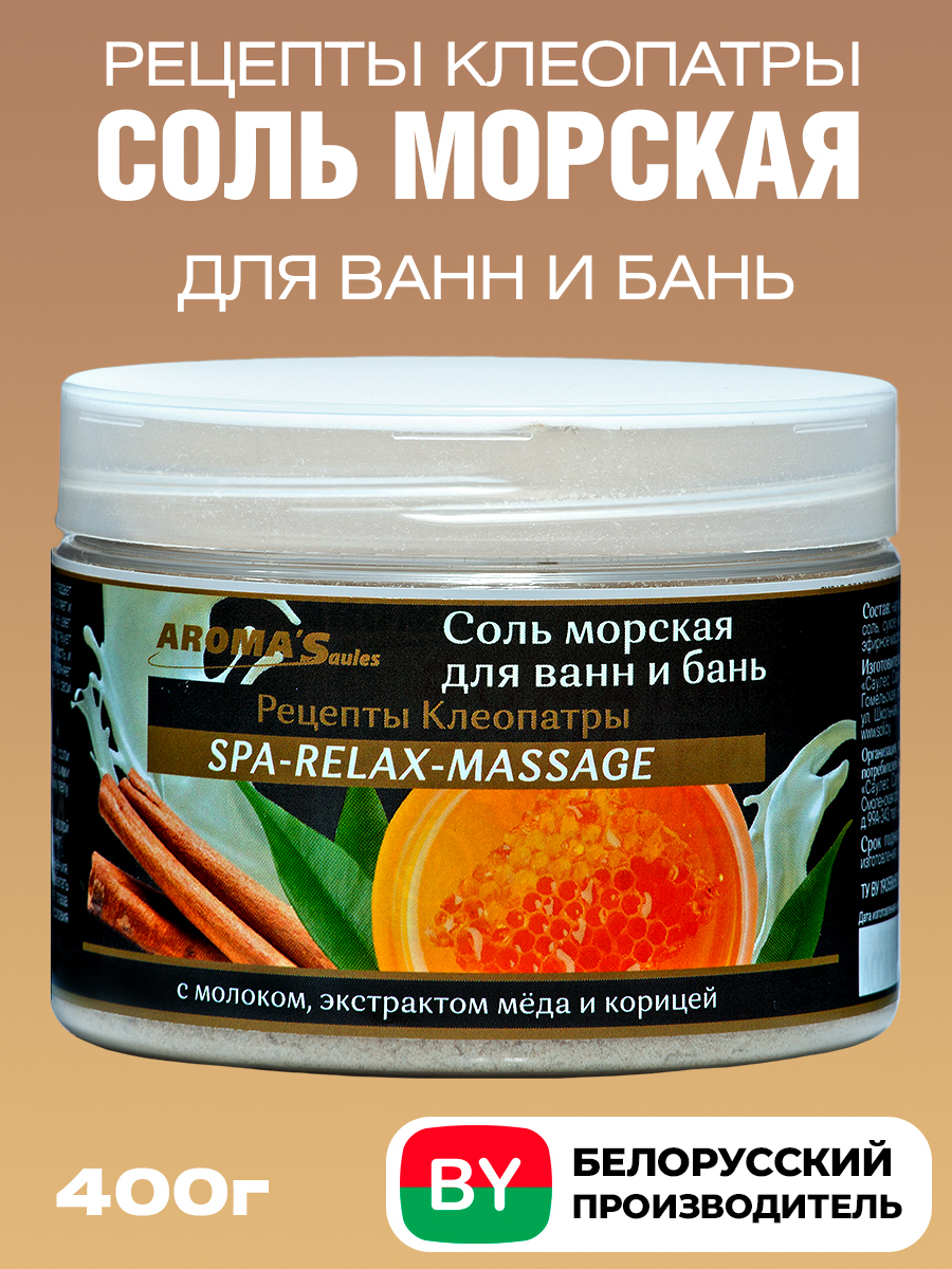 Соль для бани и ванн "Рецепты Клеопатры" – комплексное средство по уходу за кожей тела – специальный состав, родственный оригинальному рецепту, обладает нежным сладким ароматом, смягчает кожу, расслабляет и успокаивает.