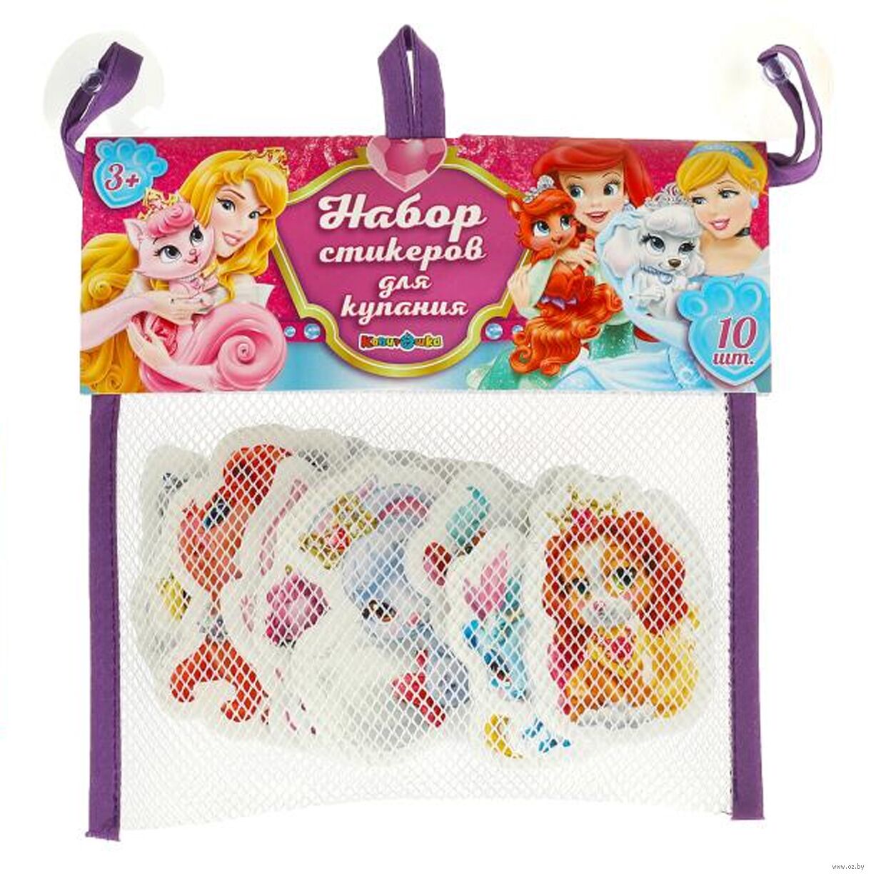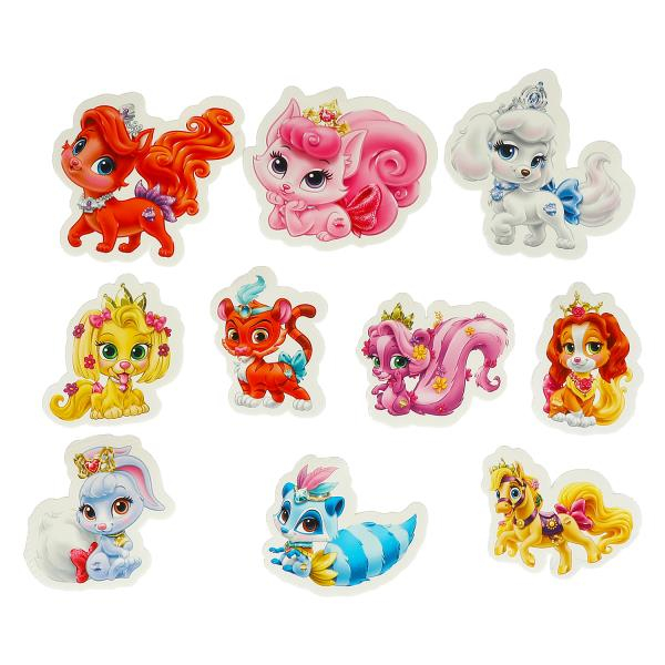 Фигурные стикеры с изображением милых питомцев известных сказочных принцесс привлекут внимание и поднимут настроение малышу. Фигурки можно запускать в плавание, расставлять на краю ванны или, намочив их водой, крепить на плитку, придумывая истории и сценки.