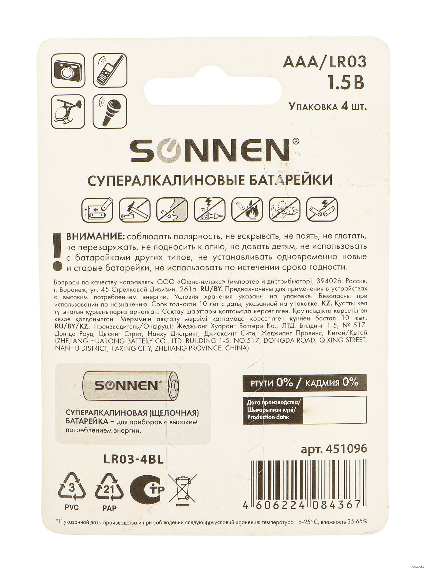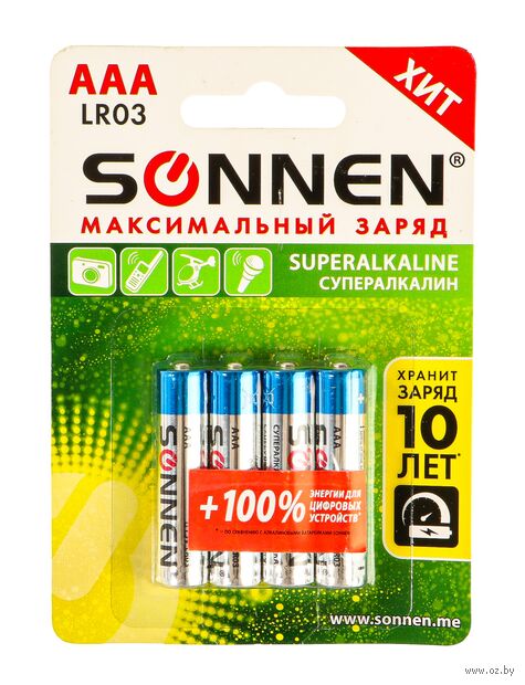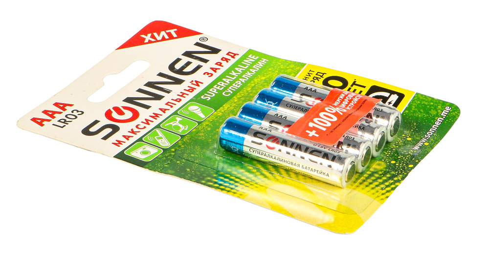 Супералкалиновые батарейки SONNEN популярного типоразмера AAA идеально подходят для приборов с высоким потреблением энергии. Рекомендуется использовать в фотовспышках, mp3-плеерах, компьютерных мышах и детских игрушках.