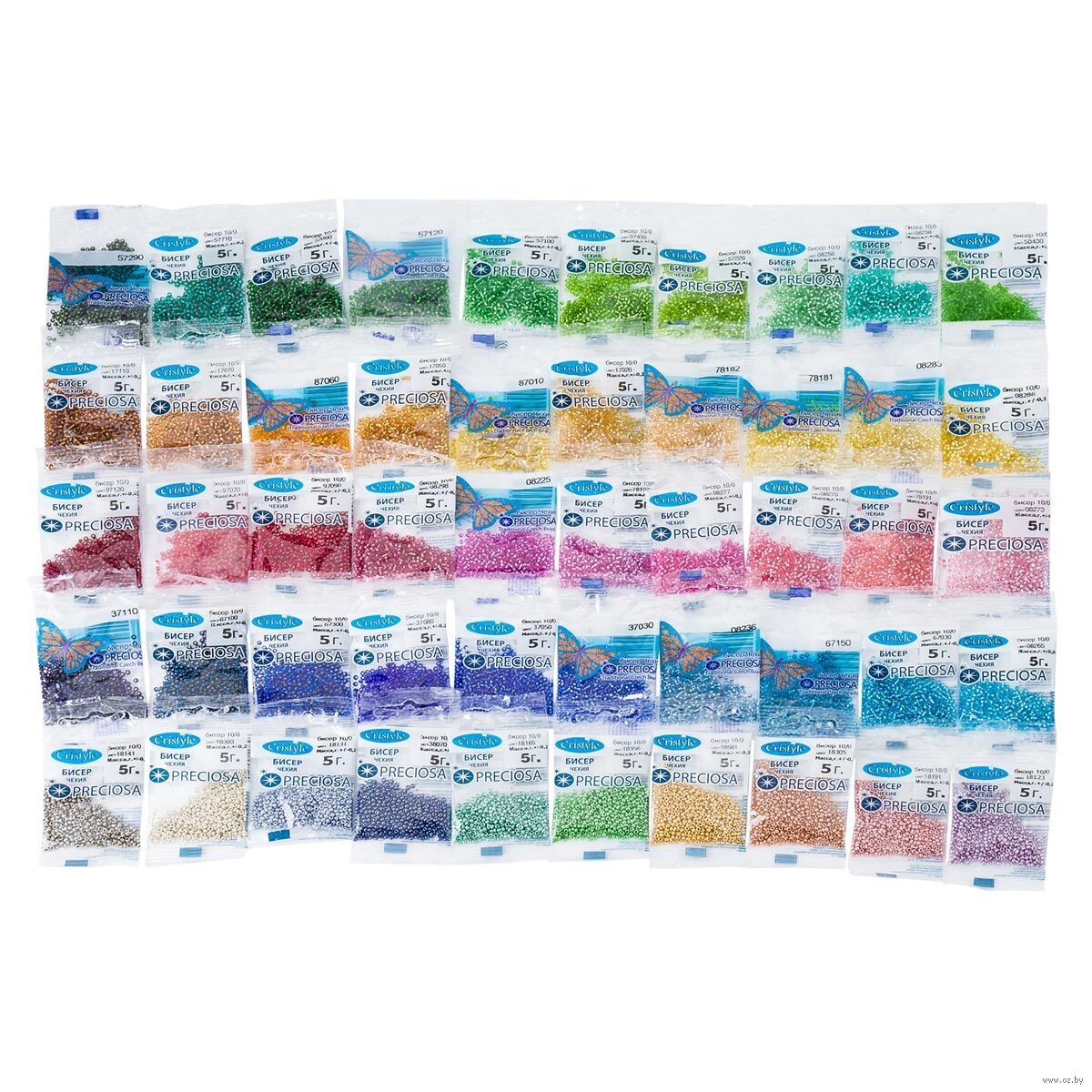 50 цветов. Бисер набор расфасован в пакетики по 5 г.
