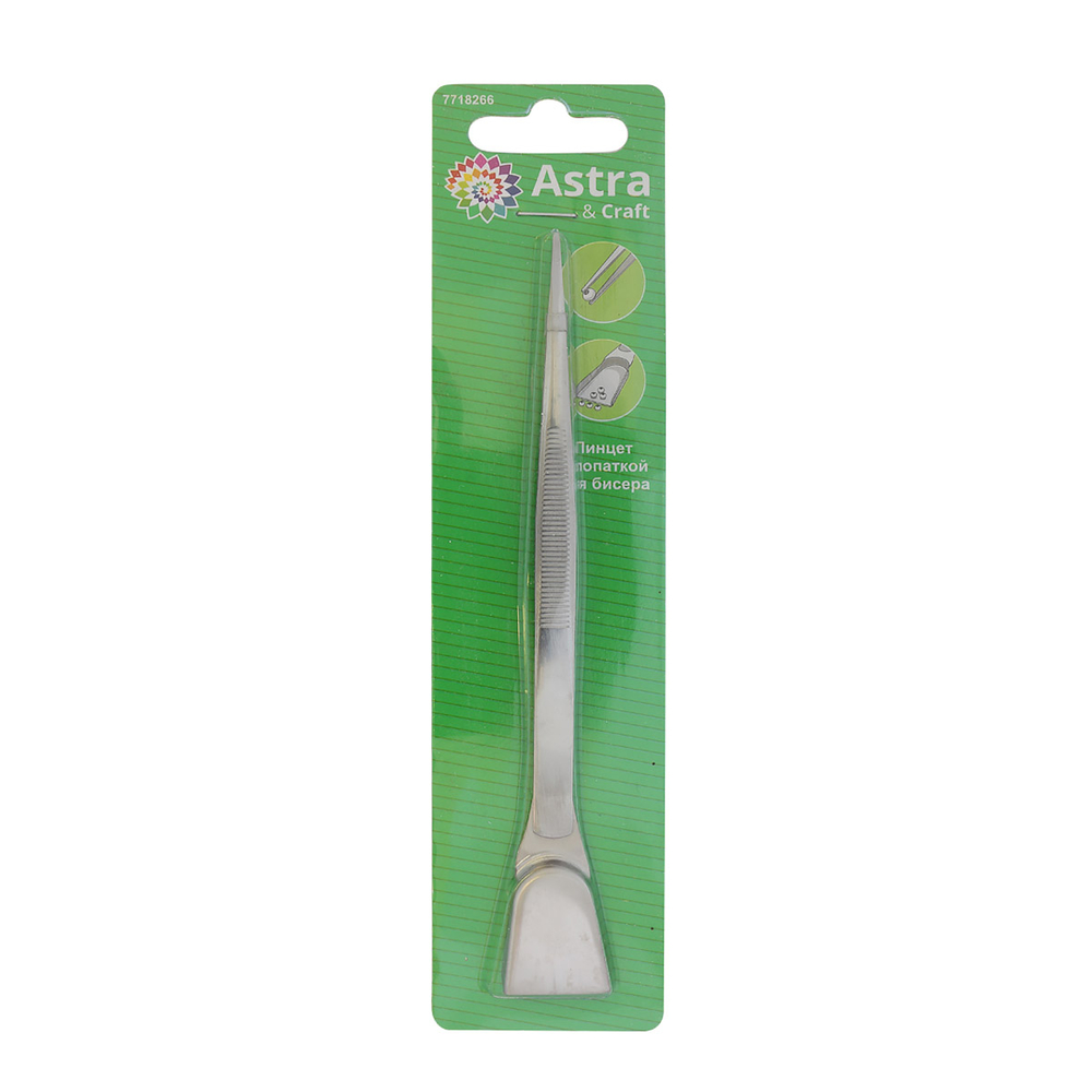 Пинцет для бисера с лопаткой от Astra&Craft позволяет удобно и быстро пересчитывать и сортировать бисер, а также собирать и перекладывать отдельные бисеринки. Лопатка на обратном конце пинцета – это настоящее спасение для тех, кто занимается созданием сложных узоров и мозаик из бисера. С ее помощью вы сможете аккуратно подбирать и размещать бисер в нужном месте.
