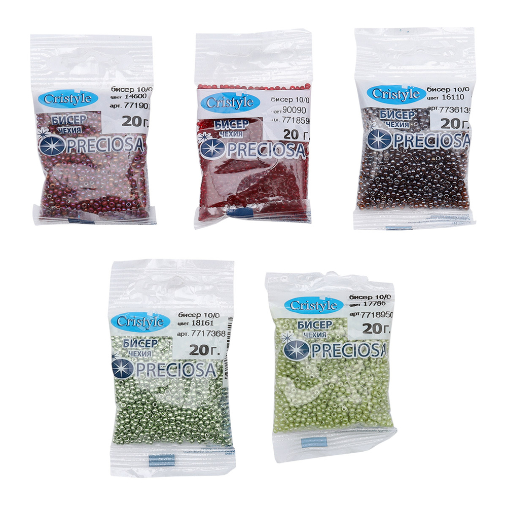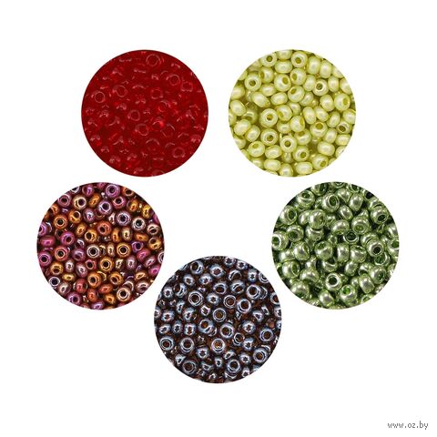 Бисер набор из пяти цветов – подходит для плетения и изготовления украшений, браслетов, вышивки бисером. Диаметр каждой бусины составляет 2,3 мм.