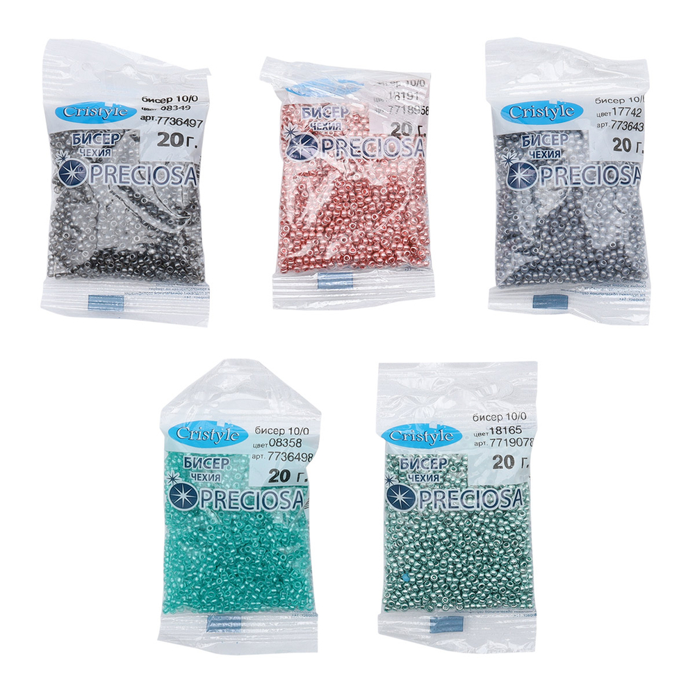 Бисер набор из пяти цветов – подходит для плетения и изготовления украшений, браслетов, вышивки бисером. Диаметр каждой бусины составляет 2,3 мм.