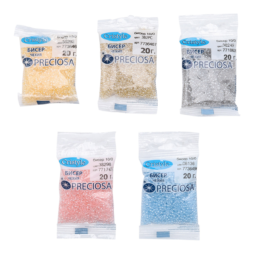 Бисер набор из пяти цветов – подходит для плетения и изготовления украшений, браслетов, вышивки бисером. Диаметр каждой бусины составляет 2,3 мм.