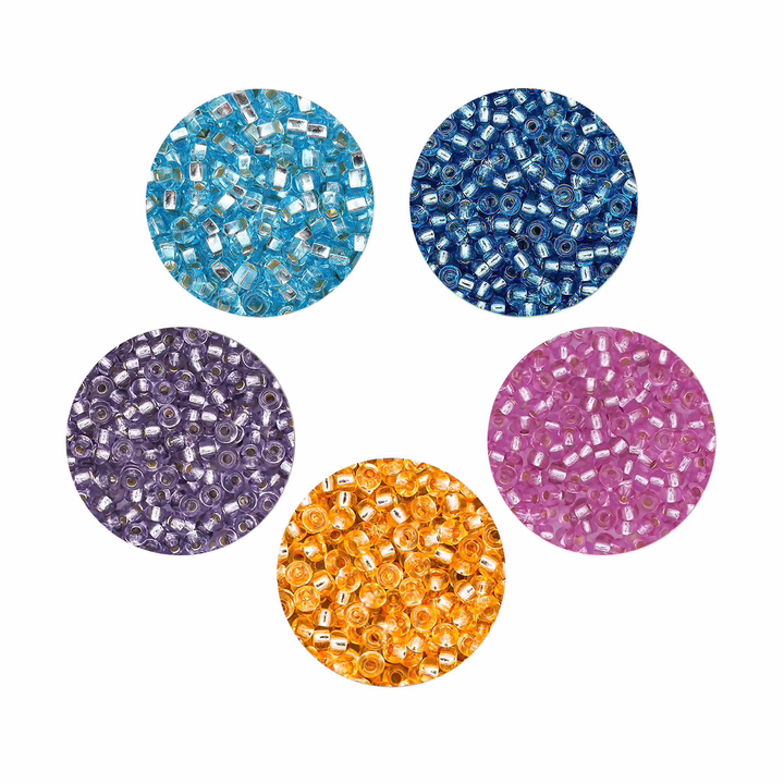 Бисер набор из пяти цветов – подходит для плетения и изготовления украшений, браслетов, вышивки бисером. Диаметр каждой бусины составляет 2,3 мм.
