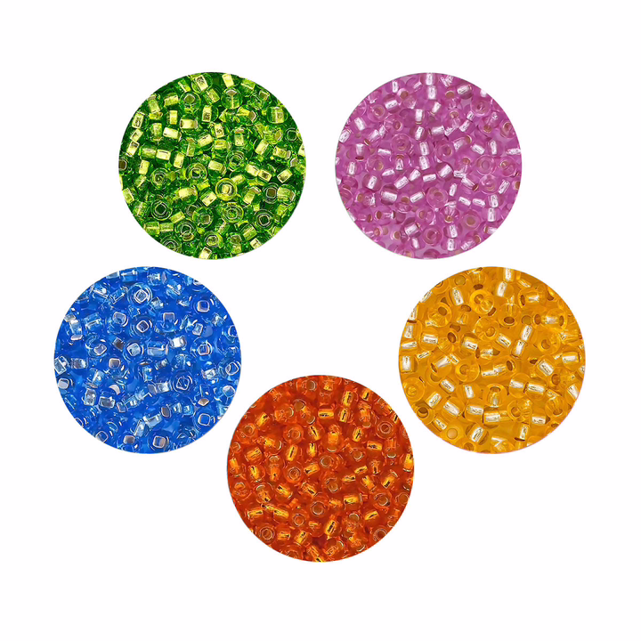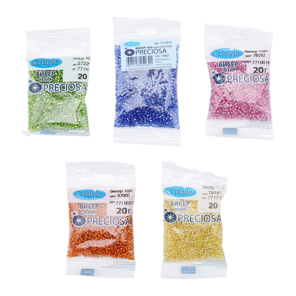 Бисер набор из пяти цветов – подходит для плетения и изготовления украшений, браслетов, вышивки бисером. Диаметр каждой бусины составляет 2,3 мм.