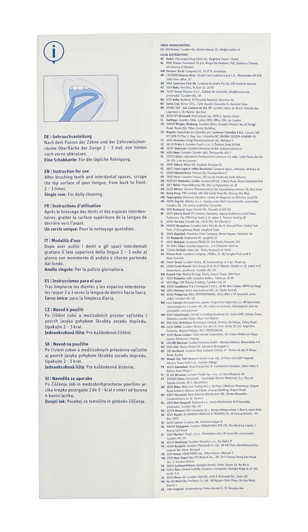 Аккуратно провести скребком по поверхности языка 2-3 раза.Состав
