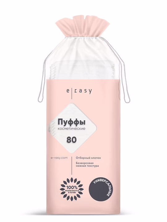 Уникальный набор косметических пуффов (ватные диски) E-RASY, идеально подходит для ухода за кожей всех членов семьи.