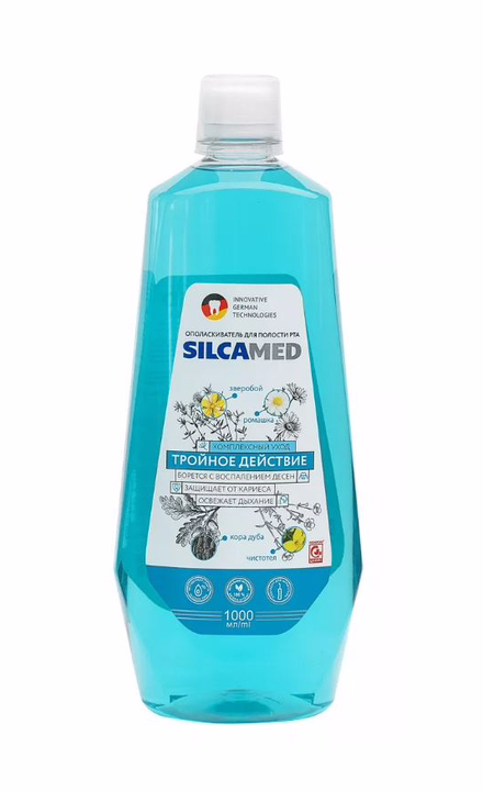 Современная рецептура ополаскивателя способствует комплексному уходу за всей полостью рта.