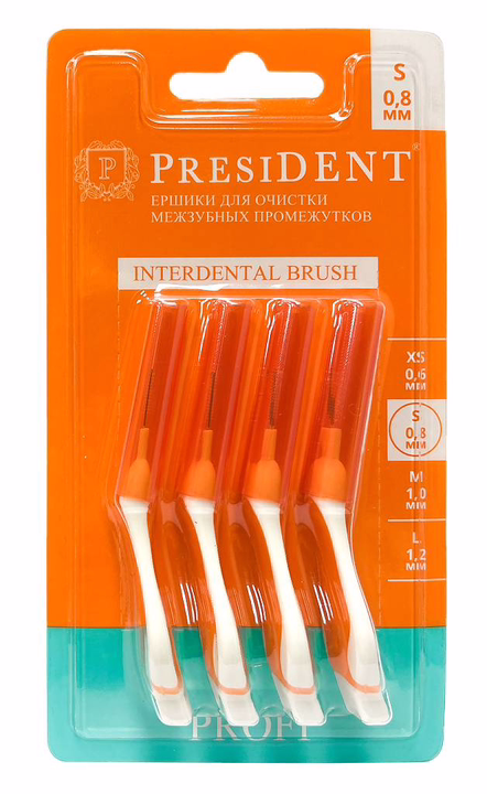 Ершики межзубные "Profi S" диаметром 0,8 мм подходят для очистки межзубных промежутков, брекетов, мостов, обеспечивая эффективное очищение труднодоступных мест.