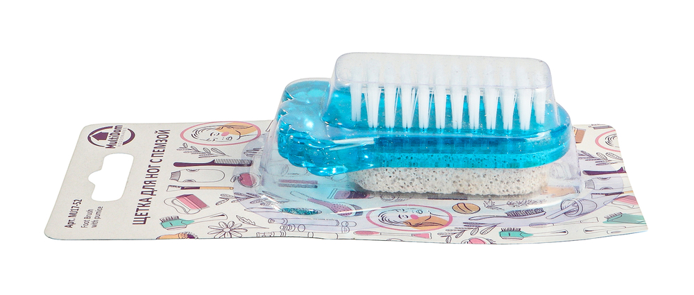 Пемза предназначена для шлифования огрубевшей кожи стоп и пяток, эффективно, но бережно удаляет ороговевшие частички. Щеточка используется для удаления пыли и грязи во время проведения педикюра и маникюра, а также для очистки загрязнений на коже и под ногтями. Мягкие щетинки хорошо справляются с загрязнениями, при этом не царапают кожу.