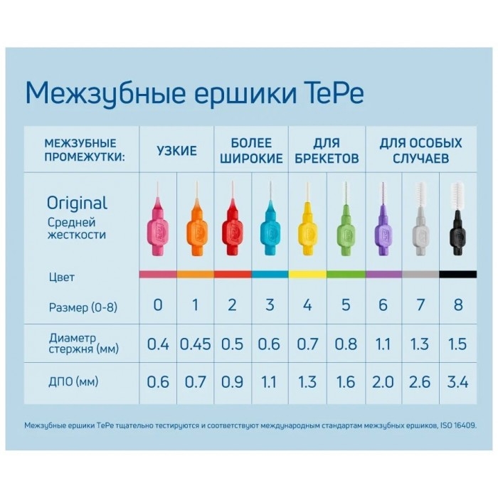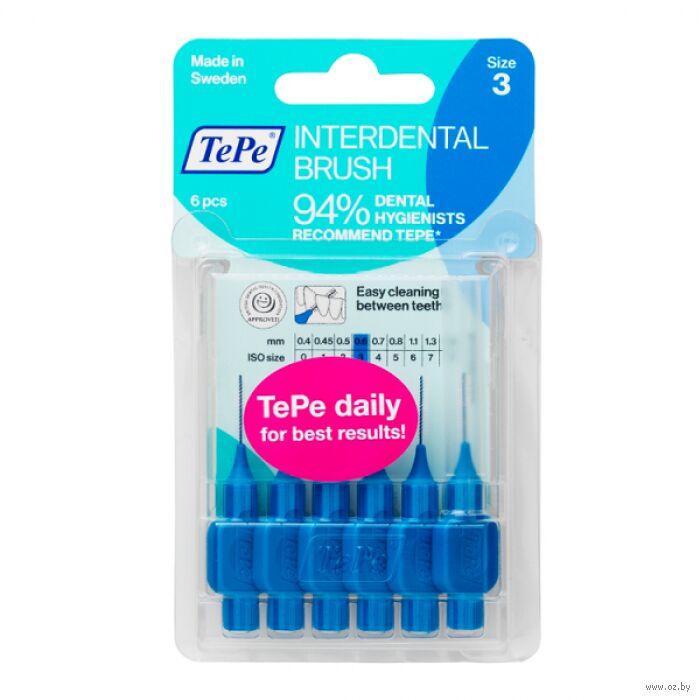 TePe Original №3 (0,6 мм) – это ершики с маленьким держателем, разработанные для чистки участков между зубами, куда обычная зубная щетка не может добраться. Они сделаны из гибкой металлической проволоки, которая тщательно очищает зубы. При этом каждый стержень покрыт пластиковой защитой, чтобы сделать вашу ежедневную процедуру атравматичной и комфортной. Их Вы также можете применять для очищения имплантатов или брекетов.