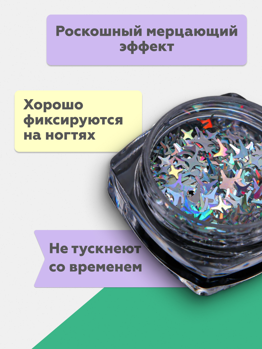 Можно использовать не только для маникюра, но и для поделок, декора. Пайетки находятся в баночке, что не позволит им высыпаться.
