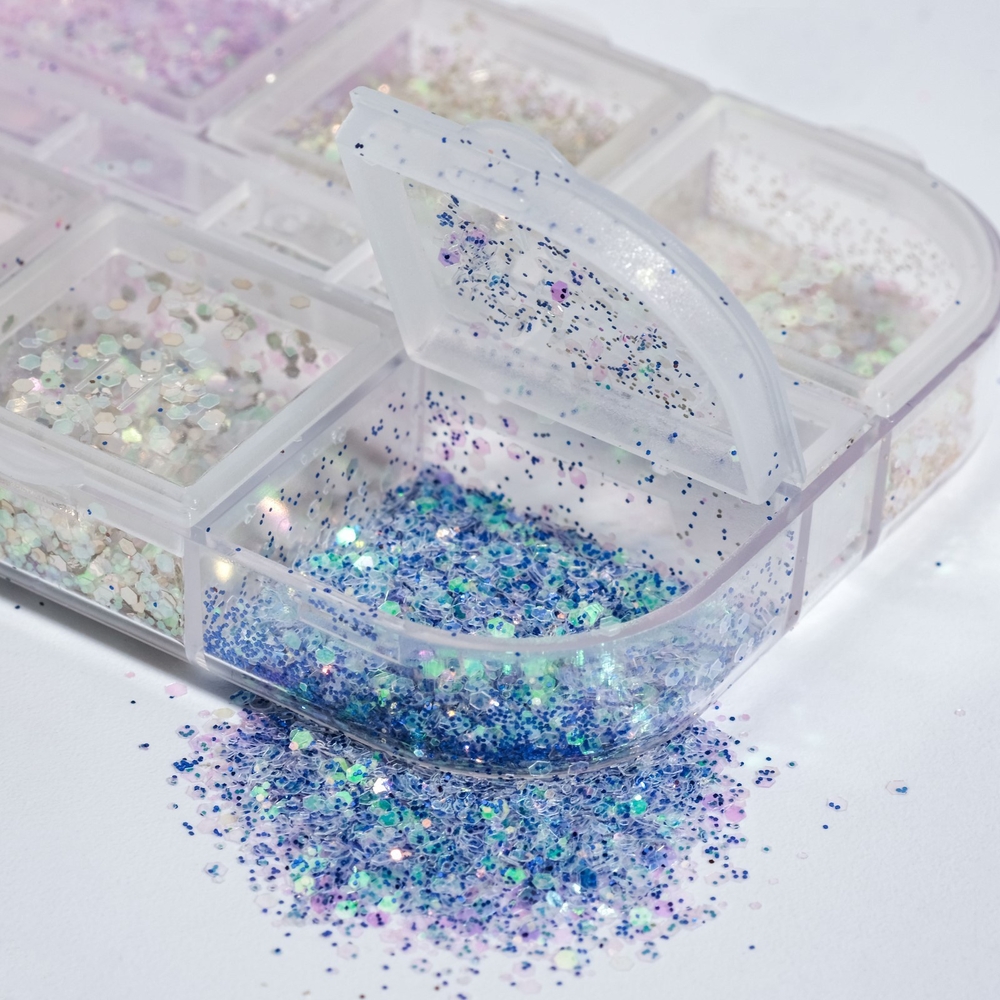Даже самый строгий образ может сделать непринуждённее, если добавить немного блёсток! Благодаря простоте применения их всё чаще используют при создании яркого макияжа и маникюра.