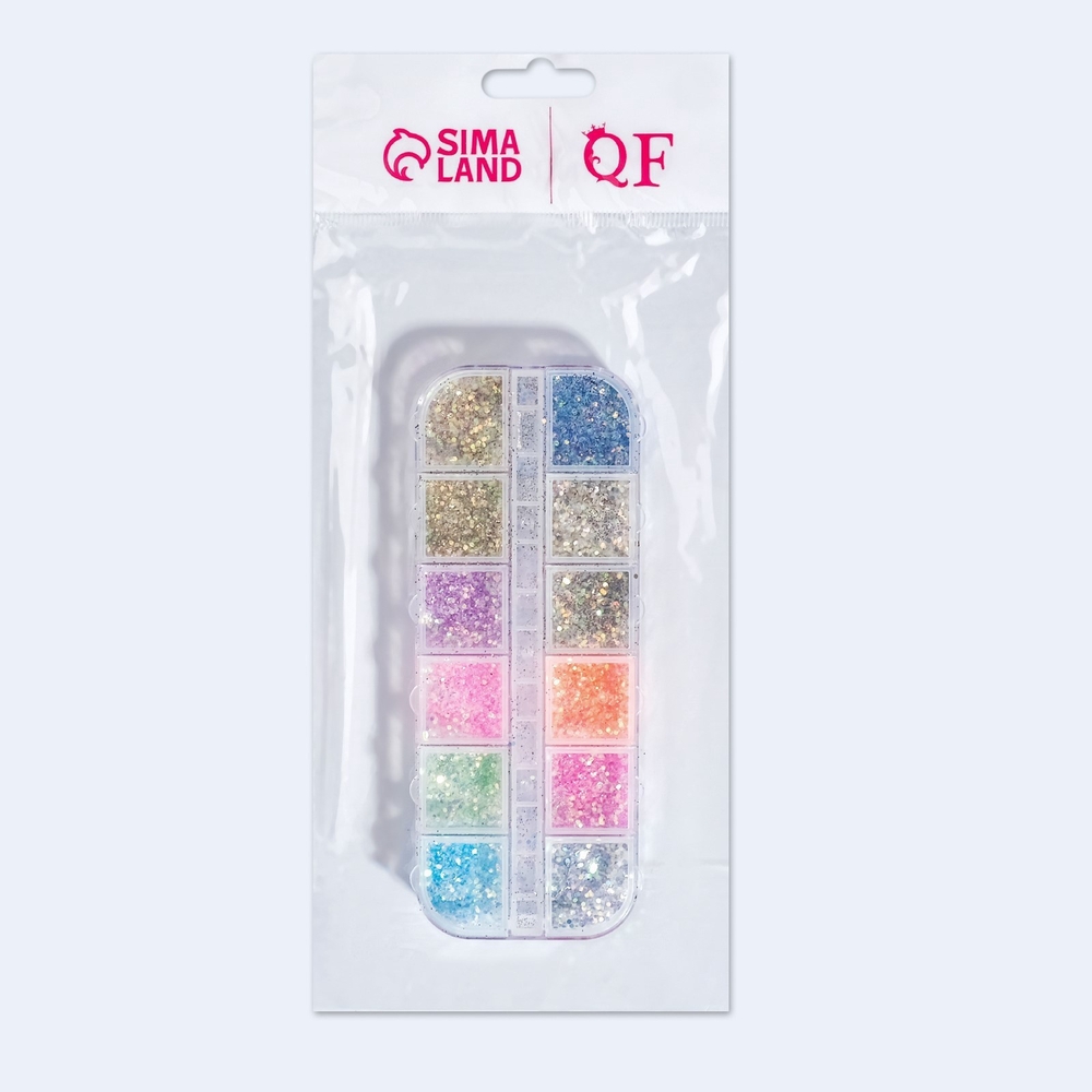 Опустите в ячейку с блёстками кончики пальцев с только что нанесённым на ногти лаком. Таким образом вы сэкономите время.