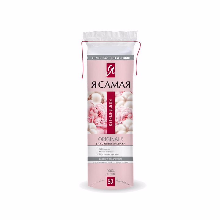 Ватные диски Я самая обаятельная благодаря своей мягкой и нежной структуре великолепно очищают кожу и обеспечивают отличный впитывающий эффект. Ватные диски используются для ежедневного очищения кожи, а также для корректировки и снятия макияжа.