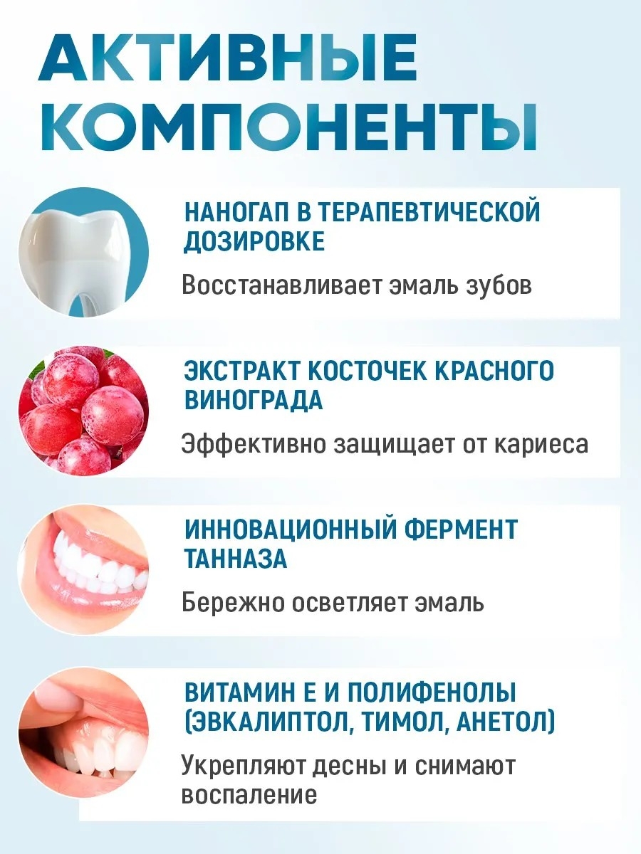 вода; Антиоксиданты Токоферолы; гидроксиапатит; глицерин; жимолости душистой экстракт; Касторовое масло гидрогенизированное; лимонная кислота; сукралоза