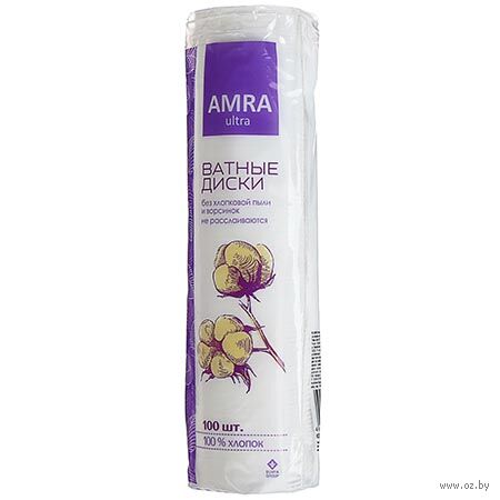 AMRA Ватные диски изготовлены из 100% хлопка, обладающего высокой впитываемостью, что позволяет эффективно удалять излишки косметики. Багодаря нескольким циклам очистки полотно для дисков получается белоснежным, однородным, без ворсинок и посторонних примесей.