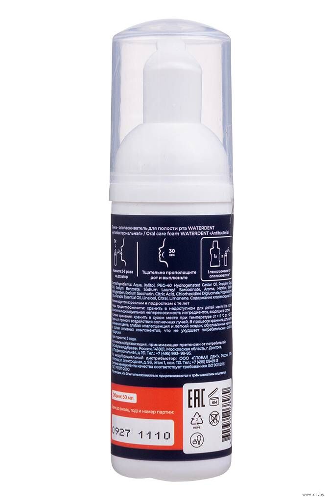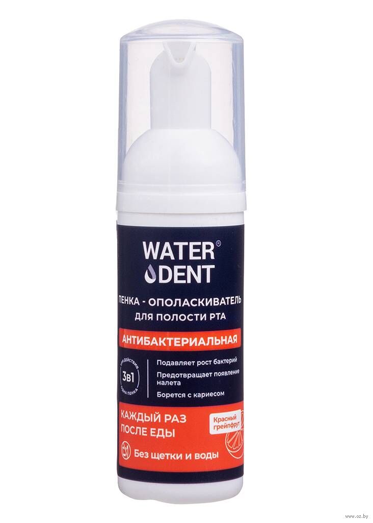 Очищающая пенка Waterdent "Антибактериальная" – удобная альтернатива зубной пасте и щетке в тех ситуациях, когда нет возможности ими воспользоваться.