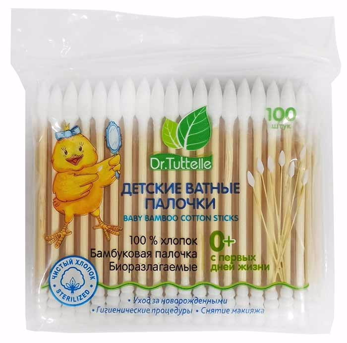 Детские ватные палочки изготовлены из бамбука и гипоаллергенного 100 % хлопка. Рекомендовано с первых дней жизни. Детские ватные палочки Dr. Tuttelle многофункциональны: это незаменимый помощник в уходе за новорожденным и для гигиенических процедур. Их можно использовать для макияжа и иных косметических и бытовых процедур.