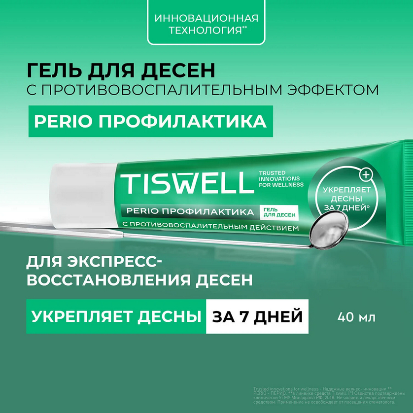 Гель для десен с троксерутином Tiswell – это эффективное средство для ухода за полостью рта. Гель от кровоточивости десен разработан с применением технологии Perio Профилактика.