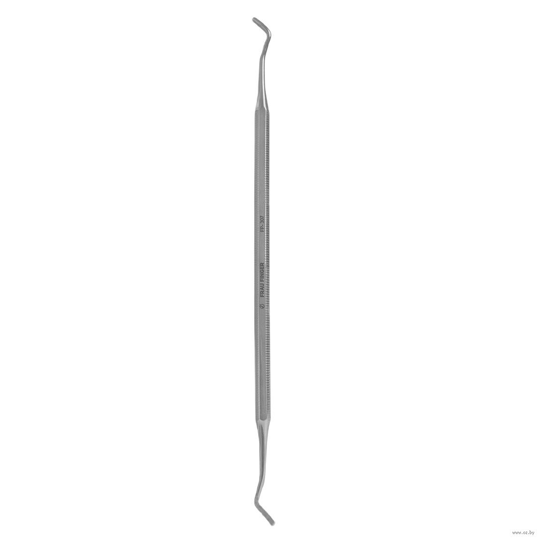 Кюретка двусторонняя от Frau Finger Classic FP-307SP является необходимым инструментом для качественного педикюра в арсенале мастеров ногтевого сервиса и подологов. Кюретка незаменимый инструмент от вросшего ногтя, она служит также для очищения основания ногтевой пластины от ороговевшего слоя кожи, удаления грязи из-под ногтей, очистки пазух и тампонирования. Профессиональный педикюрный инструмент изготовлен из высококачественной нержавеющей стали высокой прочности 42-45 HRC, что обеспечивает долговечность, износостойкость и устойчивость инструмента к стерилизации.