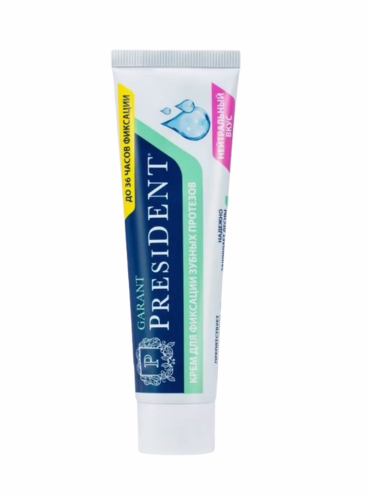 Рекомендуется использовать крем Президент Гарант для поддержания идеальной фиксации зубных протезов и комфортного приема пищи.