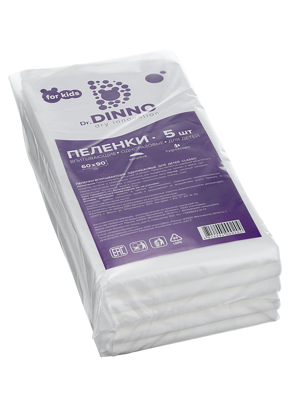Пелёнки одноразовые детские "Dr.Dinno" (5 шт.; 60х90 см)