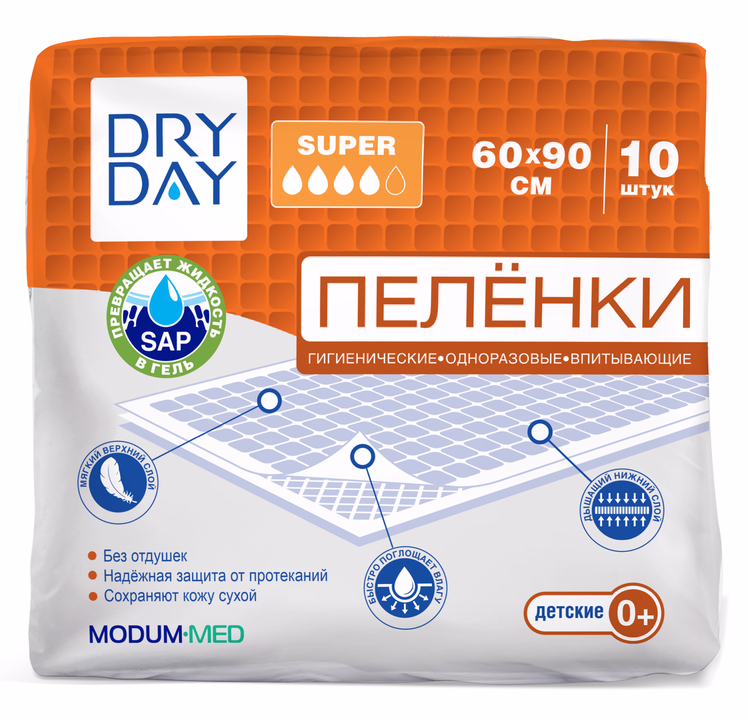 Пелёнки одноразовые детские "Super 0+" (10 шт.; 60х90 см)