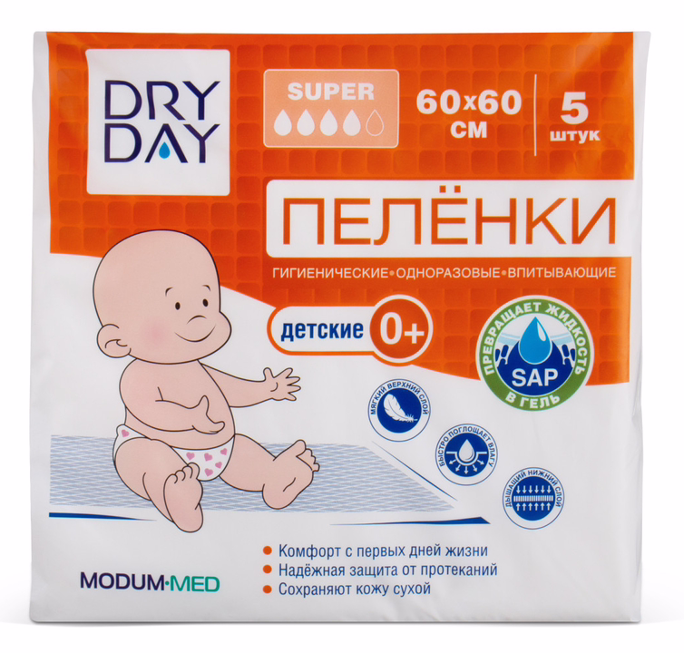 Пелёнки одноразовые детские "Super 0+" (5 шт.; 60х60 см)