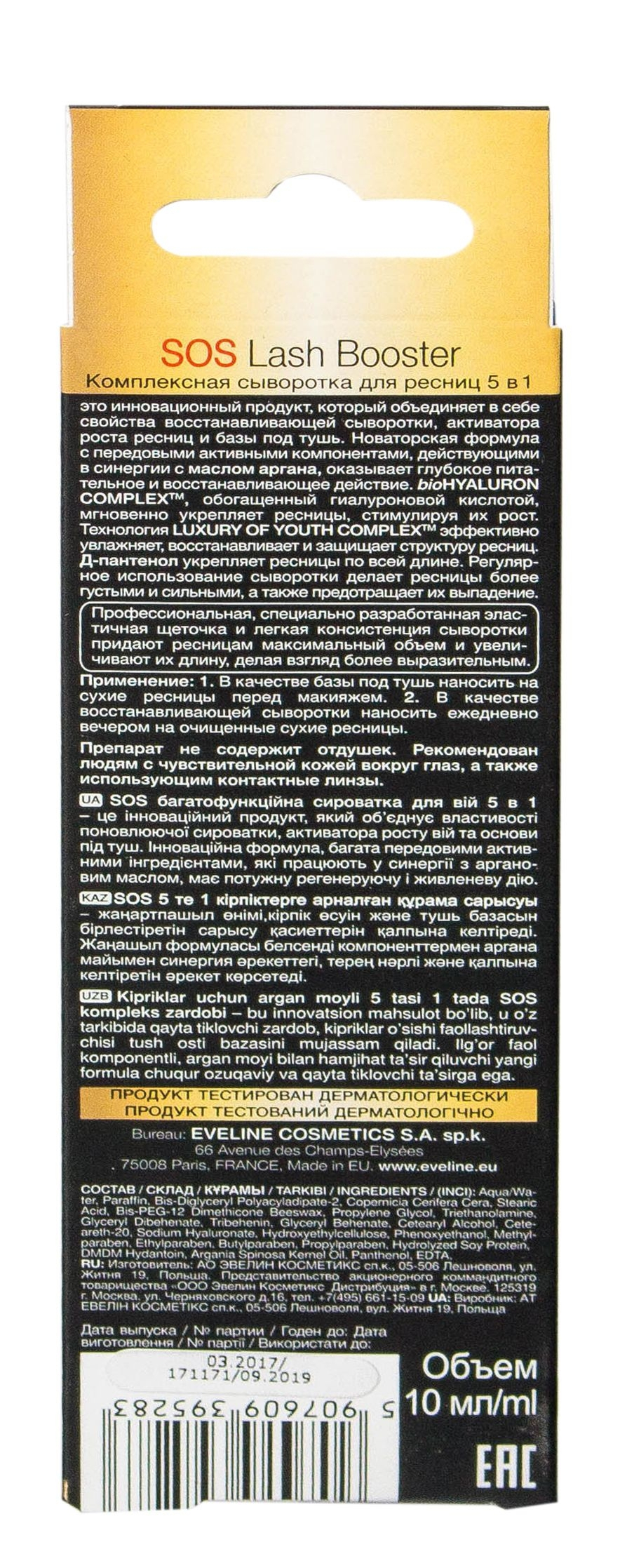 SOS Комплексная сыворотка для ресниц 5 в 1 – это инновационный продукт, который объединяет в себе свойства восстанавливающей сыворотки, активатора роста ресниц и базы под тушь. Новаторская формула с передовыми активными компонентами, действующими в синергии с маслом аргана, оказывает глубокое питательное и восстанавливающее действие.