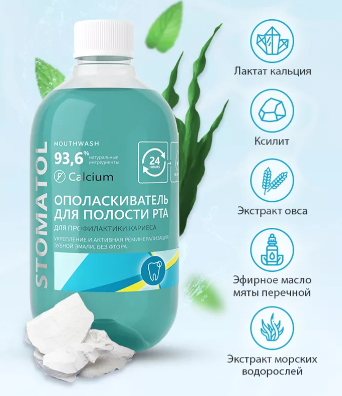 Активные компоненты, содержащиеся в ополаскивателе для полости рта "Stomatol Calcium", способствуют профилактике кариеса.