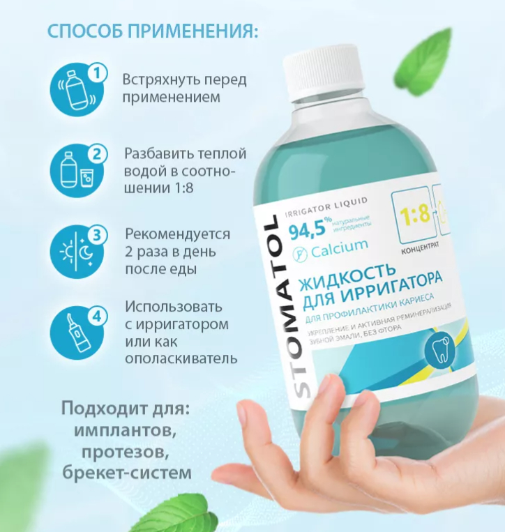 Благодаря содержанию лактата кальция, концентрат эффективно укрепляет эмаль и восстанавливает её структуру на молекулярном уровне.