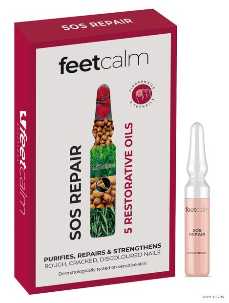 Слегка встряхните ампулу и наденьте на нее сверху колпачок-открывалку. Сломайте верхнюю часть ампулы. Легкими массирующими движениями нанесите содержимое сначала на ногти и пораженные участки кожи вокруг, после — на остальную часть стопы. Оставьте на 1 минуту и, не смывая, завершите процедуру нанесением необходимого средства SOS REPAIR (мусс или спрей). Используйте концентрат сразу после вскрытия.Состав