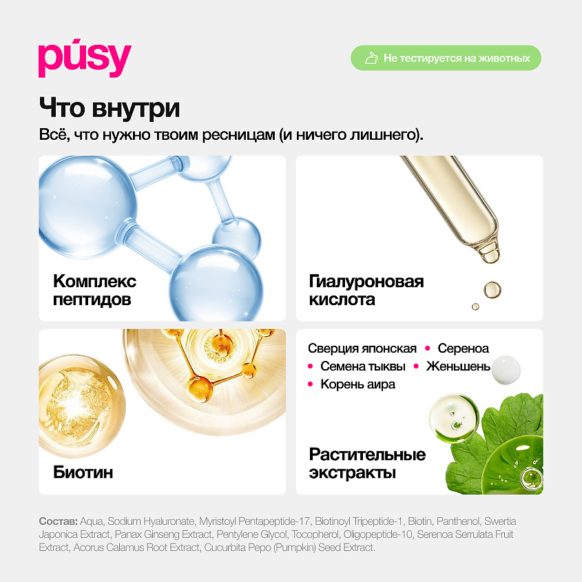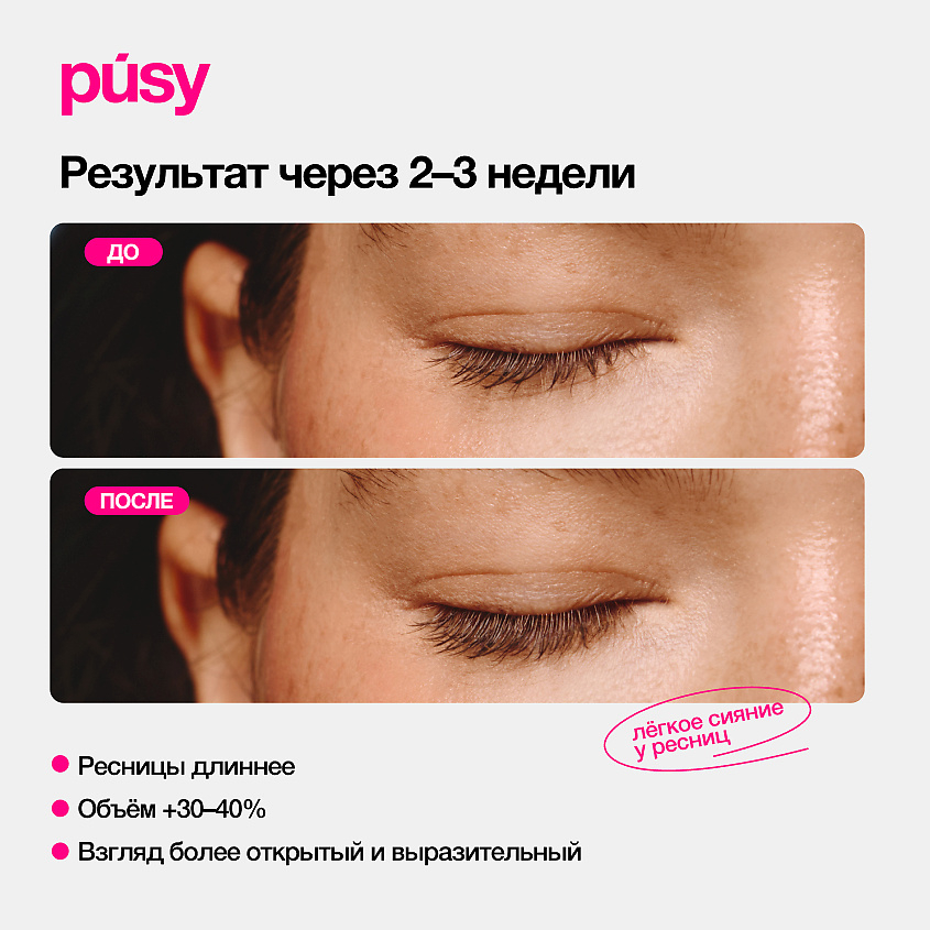 Pusy "Eyelash Growth Serum" – идеальное решение чтобы подарить своим ресницам силу и красоту.