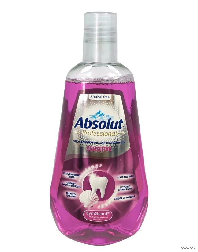 Ополаскиватель для полости рта "ABSOLUT Professional" Sensitive – защищает от бактерий и освежает дыхание, устраняет зубной налет и снижает чувствительность зубов.