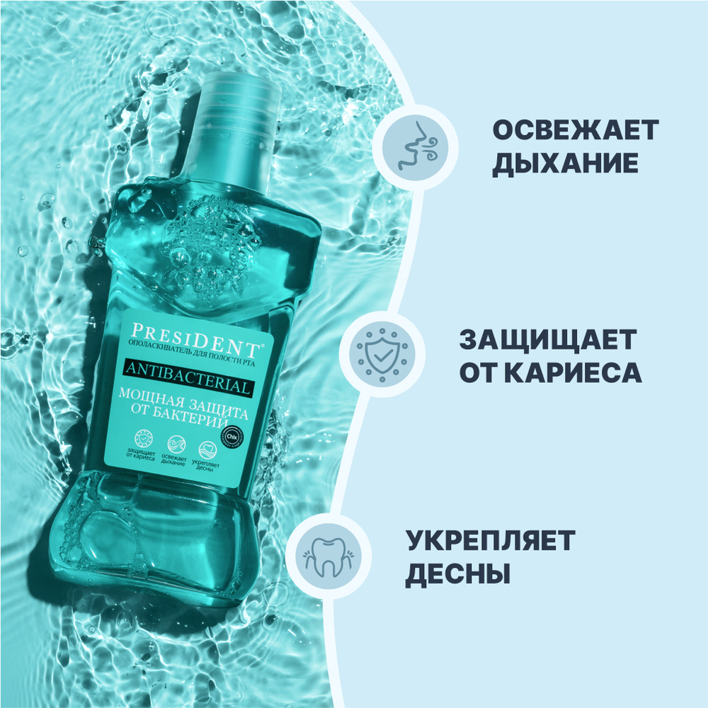 Ополаскиватель имеет мятный вкус, освежает полость рта и является профилактикой воспаления десен.